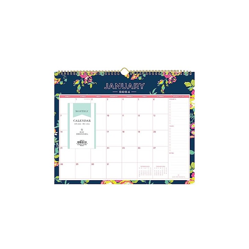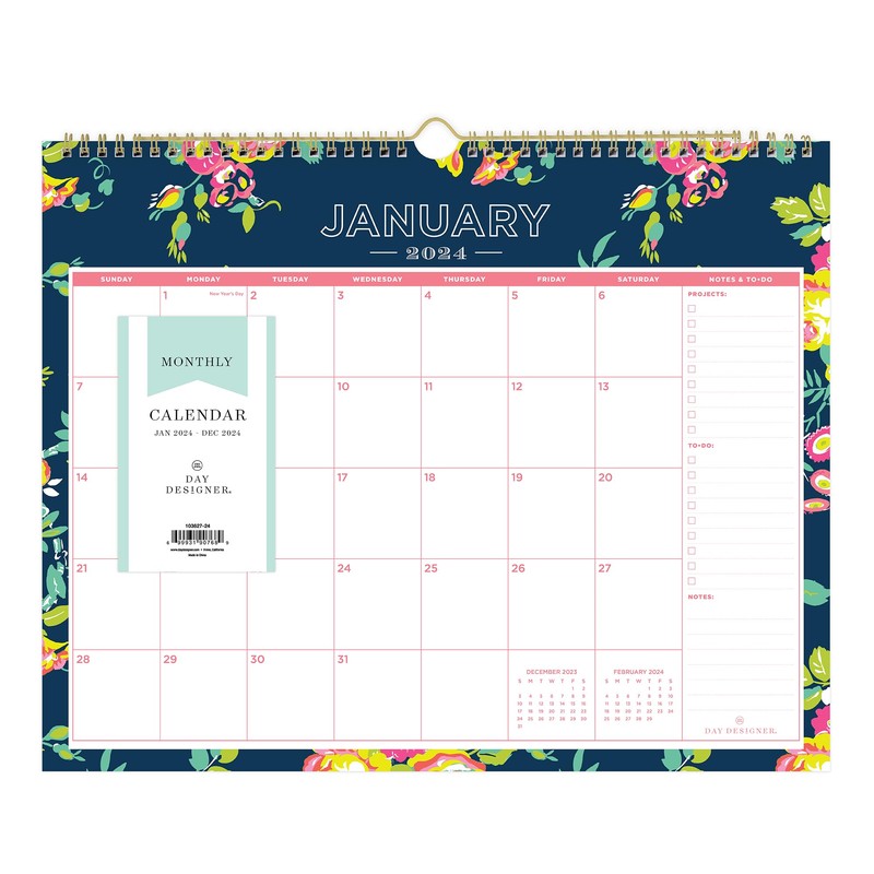 Day Designer for Blue Sky 2024 Monthly Wall Calendar, January - December, 15" x 12", Wirebound, Notes Section, Peyton Navy (103627-24)