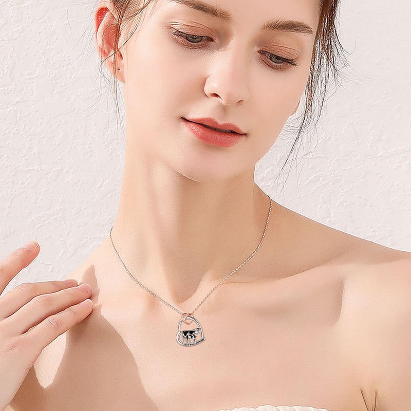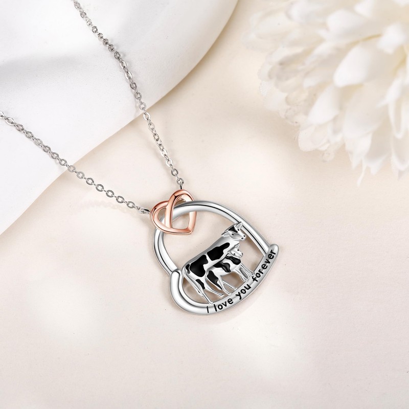 DAYLINLOVE Cow Necklace 925 Sterling Silver Cow Heart Shape Mom Pendant Necklace Mother Son Daughter Animal Jewellery Gifts for Mum Mother Women Cow Lover