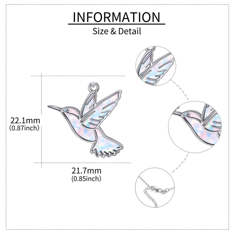 - đź’–925 Sterling Silver Material: Hummingbird jewelry for women is made of 925 sterling silver and opal, no nickel, no lead, no cadmium, without any allergenic elements. Hummingbird necklace sterling silver, not easy to fade, has a long-lasting luster