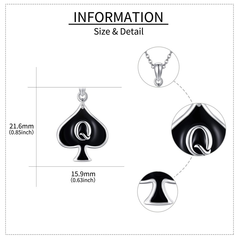 - Material: Queen of Spades necklace is made of 925 sterling silver, nickel-free, lead-free, cadmium-free, hypoallergenic, antioxidant, does not fade easily, suitable for long wear.