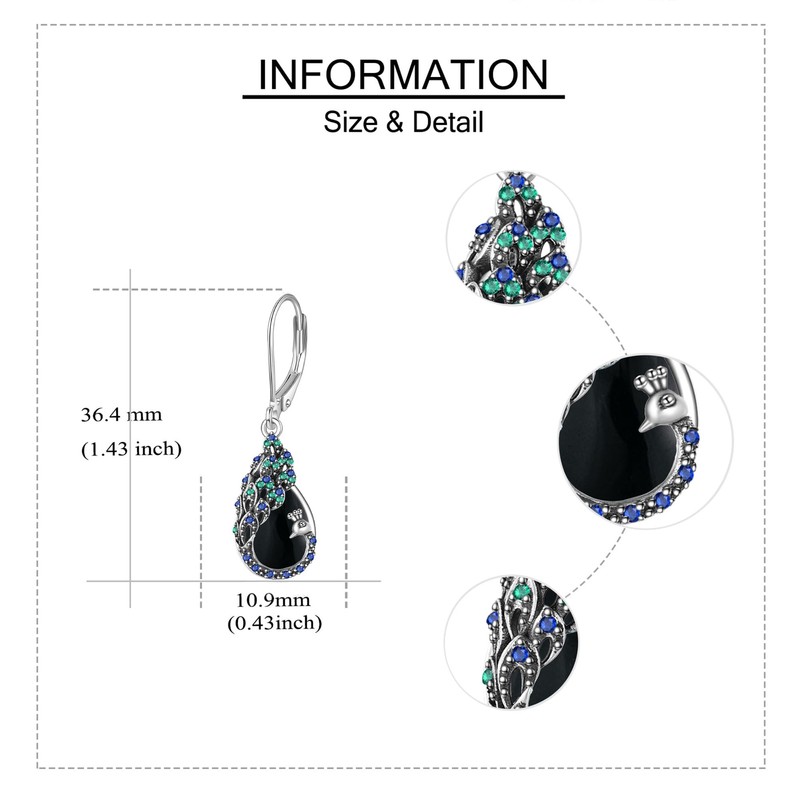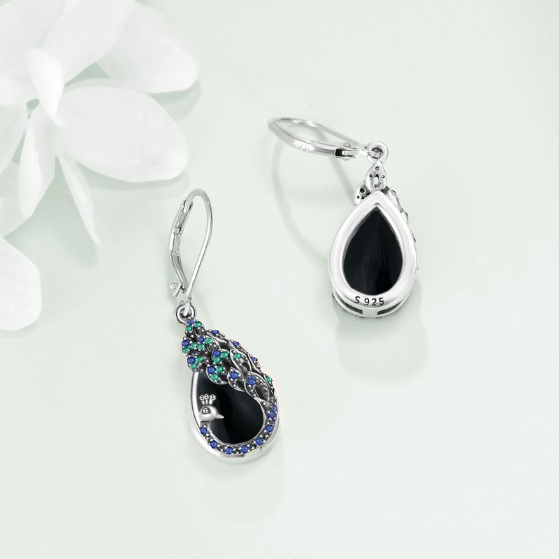 - đź’•DESIGN: Peacock representing different meanings to different cultures, but the peacock with it's unique beauty, makes it a handy symbol for power, strength, confidence, and even divinity.The peacock earrings combine with elegant Black Onyx,unique,fashion and charming.It's will be a great gifts for women who love peacocks.