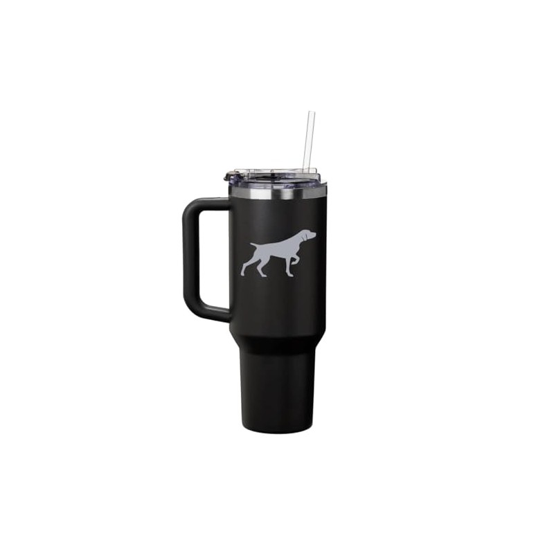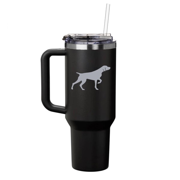 Daylor 40 oz Tumbler with Handle and Straw Lid Stainless Steel Insulated Travel Mug Cup German Shorthaired Pointer (Black)
