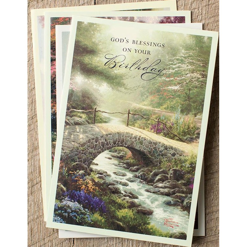 DaySring - God's Blessings on Your Birthday - Thomas Kinkade Painter of Light - 4 Design Assortment With Sciprutre - 12 Birthday Boxed Cards & Envelopes (86068)
