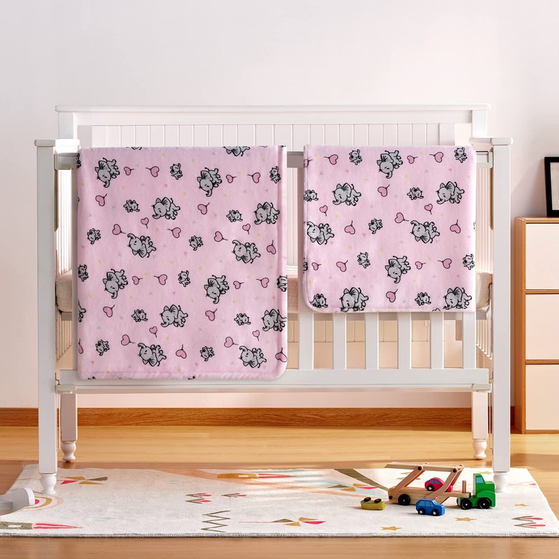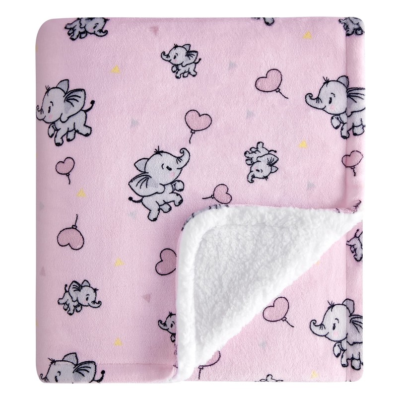 DaysU Plush Flannel Sherpa Baby Blanket for Girls Boys, Portable Reversible Soft Micro Fleece Baby Crib Throw Blanket with Animal Print for Newborn and Nursery, Elephant, 30"x40"