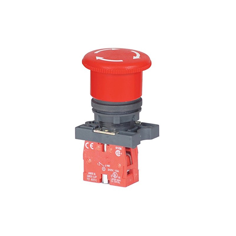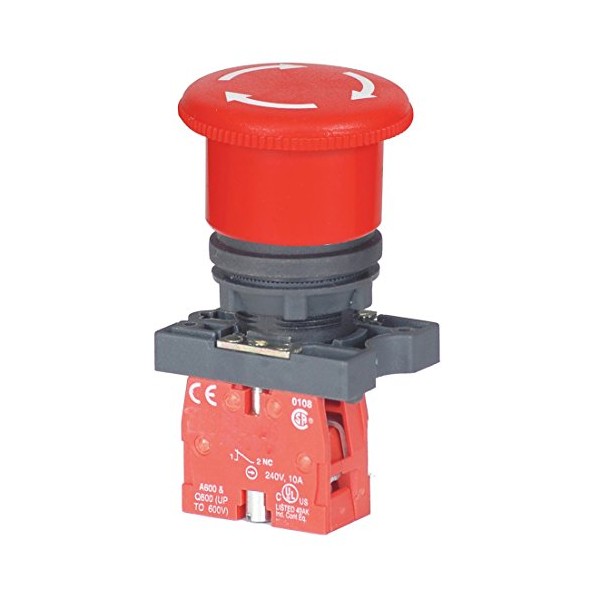 Dayton 30G252 E-Stop Push Button, Non-Ill, 22Mm, 1Nc, Red