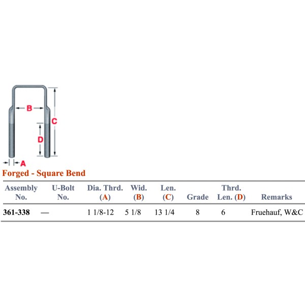 Dayton U-Bolt 361-338 Forged Square Top U Bolt for Fruehauf and Watson & Chalin