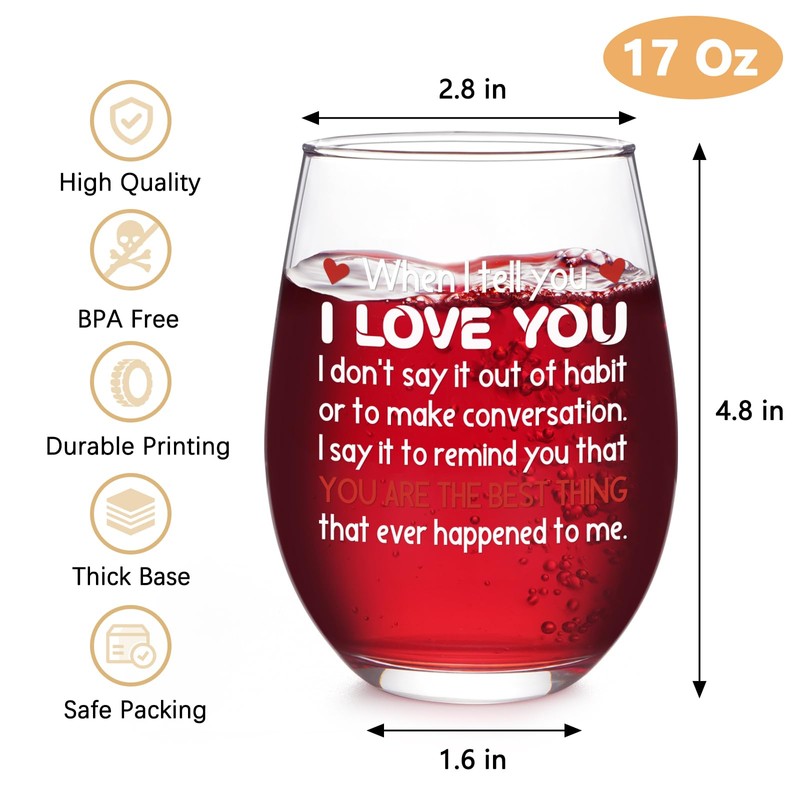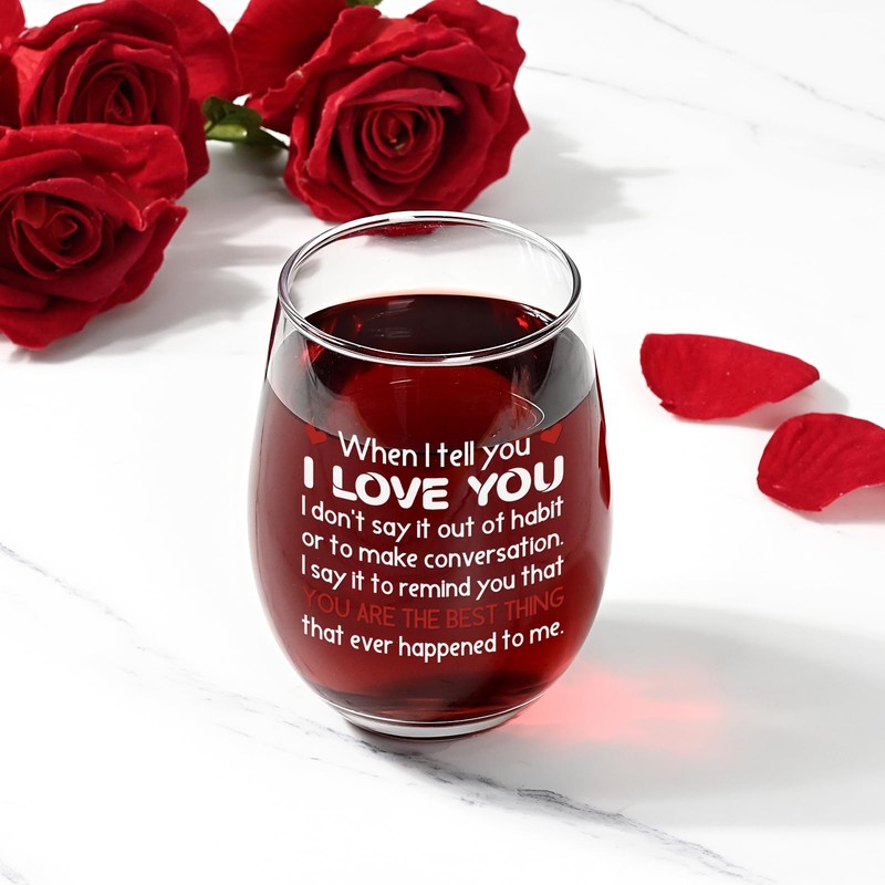 - LOVE GIFTS FOR HER: The I Love You stemless wine glass is perfect gift for grlfriend, wife, fiancee, women or her. It can be a Valentine's Day gift, anniversary gift, engagement gift, birthday gift or Christmas gift that shows your love for her.