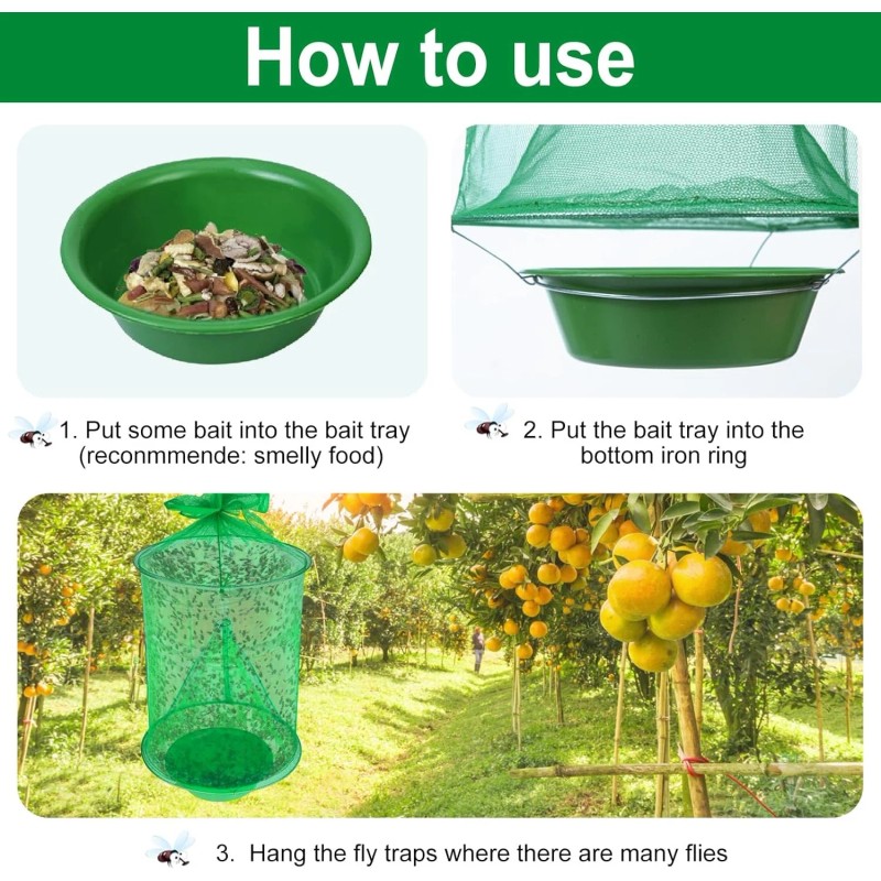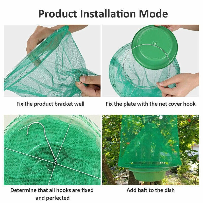 • Efficient Fly Control - the hook located above the fly killer cage enabling you place everywhere. Once the flies enter the ranch fly trap, they ultimately succumb to dehydration. For your well-being, it's advisable to avoid direct contact with the deceased flies.