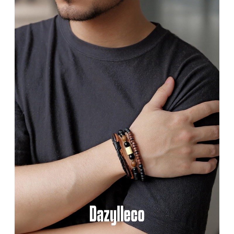 - 3-piece men's bracelet set: Our carefully crafted bracelet set includes a stainless steel chain bracelet, a bracelet made of natural stone beads and an adjustable braided bracelet. These bracelets are made with various metal accessories and natural gemstones. You can wear them individually or combine them to create a versatile style that exudes masculine charm!