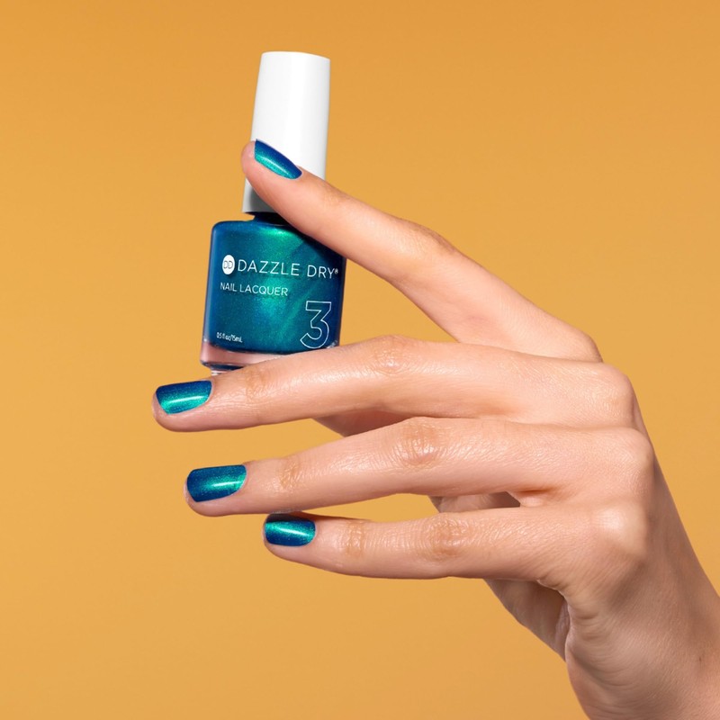 Dazzle Dry Nail Lacquer (Step 3) - Speed Boat - An aquamarine mermaid blue. Full coverage metallic. (0.5 fl oz)