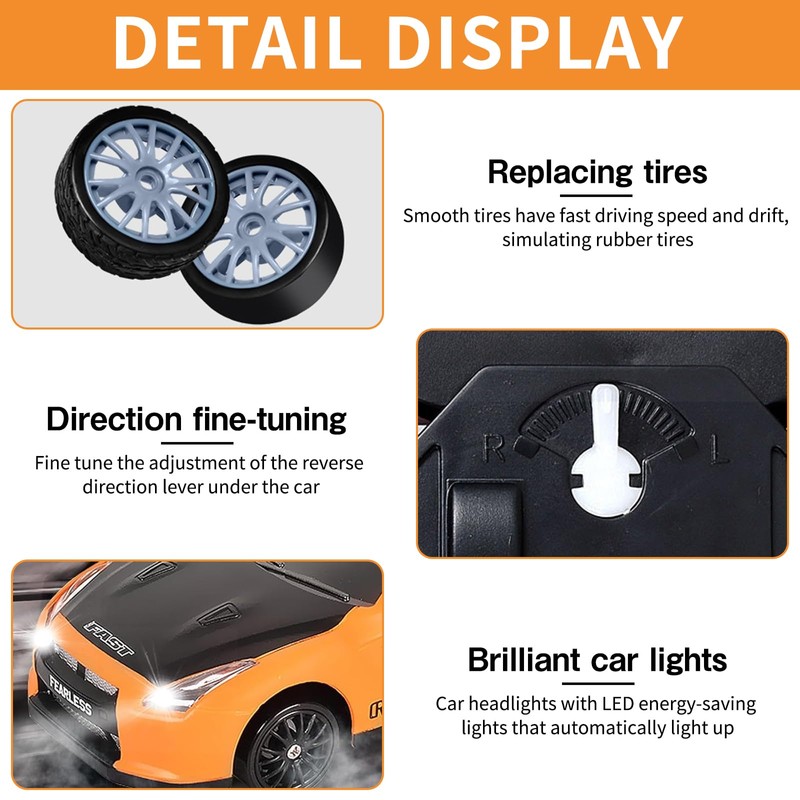- Ideal holiday gift for RC drift lovers: Our toy car with remote control is a fantastic way to promote outdoor play and help children develop their motor skills and hand-eye coordination while having a lot of fun. Whether it's for a birthday, on holiday or just because, our RC car is the perfect gift for any thrill-seeking person in your life.