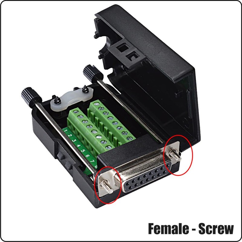 DB15 Terminal Adapter, DB15 15-Pin Terminal Plug 2 Row Breakout Connector Signal Module with Housing (Female, Screw)