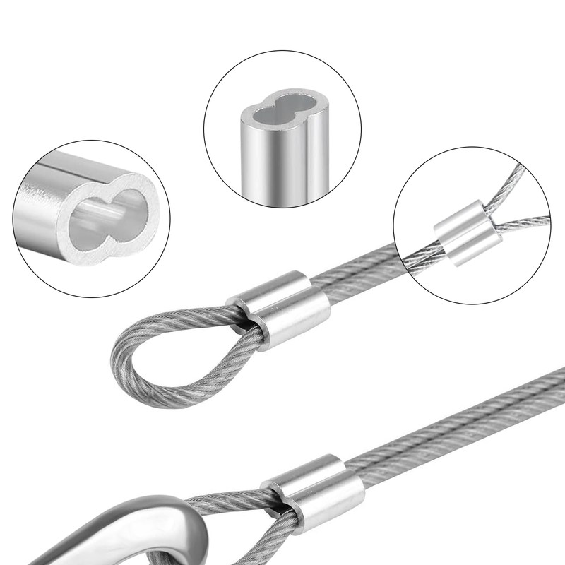 Aluminium sleeve clips can be used to compress or loop wire ropes such as cables, wires, washing lines, etc. to meet the different requirements of your daily life.