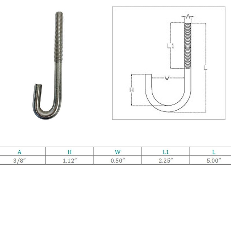 - Marine Boat 3/8" x 5" J Bolt Spring Hook J-Bolt J Hook Stainless Steel T316