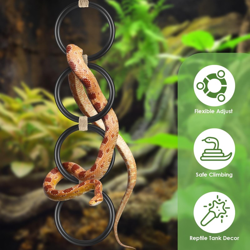 - Multi-Species Enrichment Rings: Each ring in the habitat climbing rings is 4.25 inches in diameter, making them suitable for ball pythons(up to 5 feet), corn snakes, hog-nose snakes, juvenile pythons, chameleons, bearded dragons, geckos, lizards, iguanas, and parrots. The surface of each ring is smooth, and the connections are made of natural hemp rope, ensuring they won't harm the snake's scales and can be used with peace of mind