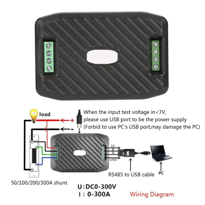- RS485 Interface: this consumption meter module is mainly used to measure DC voltage, current, active power, frequency and energy consumption, the module is without display function, the data is read through the RS485 interface.
