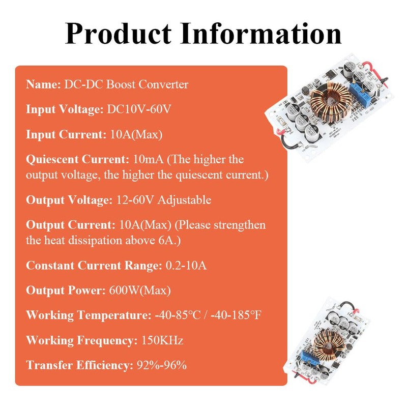 DC-DC Boost Converter, 600W DC 10V-60V Step Up Converter Boost Power Supply Module DC-DC Boost Power Supply Voltages Supply Converter Step-Up Power Supply Module