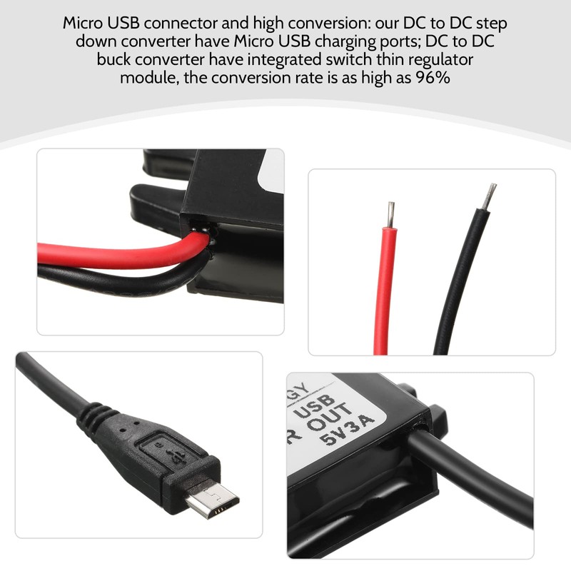 • Micro USB connector and high conversion: our DC to DC converters have Micro USB charging ports; DC to DC buck converter has an integrated switch thin regulator module, and the conversion rate is as high as 96 percent