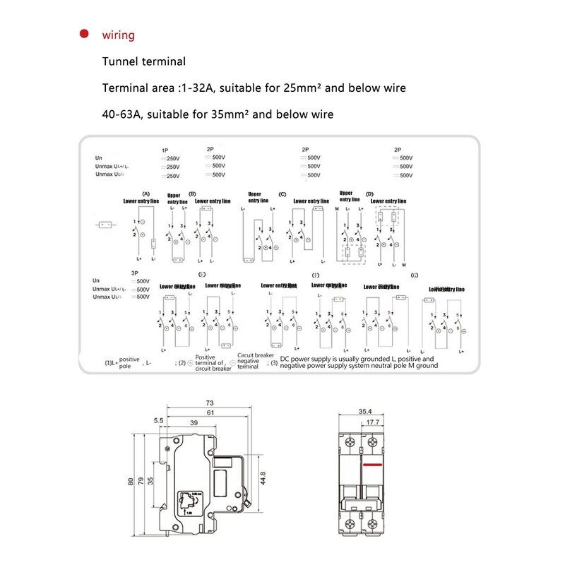 - Convenient installation - The DC circuit breaker adopts a modular structure, a screw terminal and a 35 mm DIN rail for installation, which is very convenient and fast.