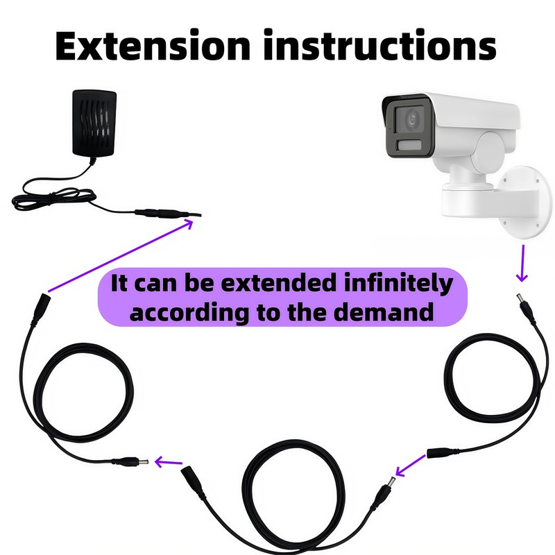 - COMPATIBILITY: Standard 5.5mm x 2.1mm DC power extension cable designed for security cameras and other DC-powered devices