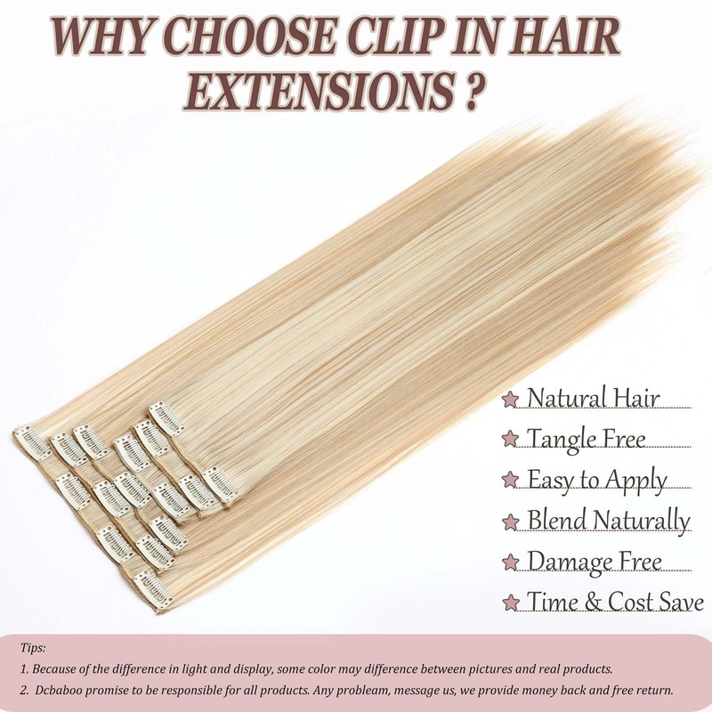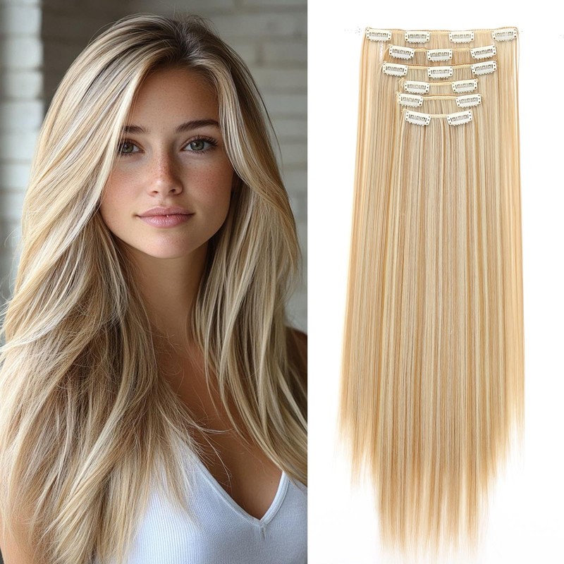 Dcbaboo Clip-In Extensions, Straight Clip-In Hairpiece, 6 Pieces, 55 cm Hair Extensions with Clips, Long Clip-In Hair Extensions for Women, Full Head, Natural Blonde & Bleach Blonde