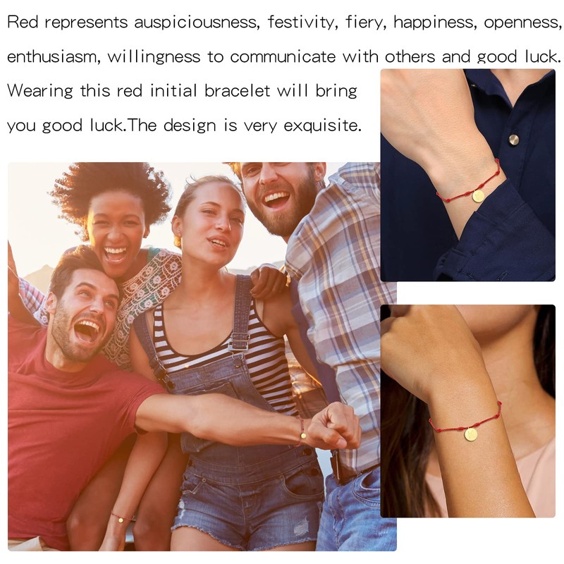 - INITIAL BRACELET: This red rope amulet has a profound meaning, expressing people's wish to drive away bad luck and bring good luck and wealth to themselves, and is a great gift to share with friends or family members to convey your sincere blessings to them.
