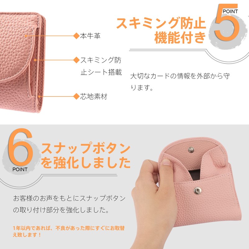 • [Skimming Prevention] Equipped with a skimming prevention sheet between the cowhide material and the interlining material, so your important card information is well protected from the outside