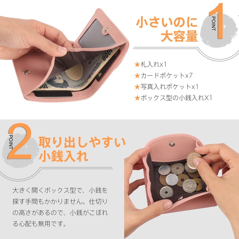 Women's Compact Mini Wallet, Bifold Leather Wallet, Mini Wallet, Small Wallet, Large Capacity, Compact Lift, Prevents Skimming, Box-type, Multi-functional Wallet
