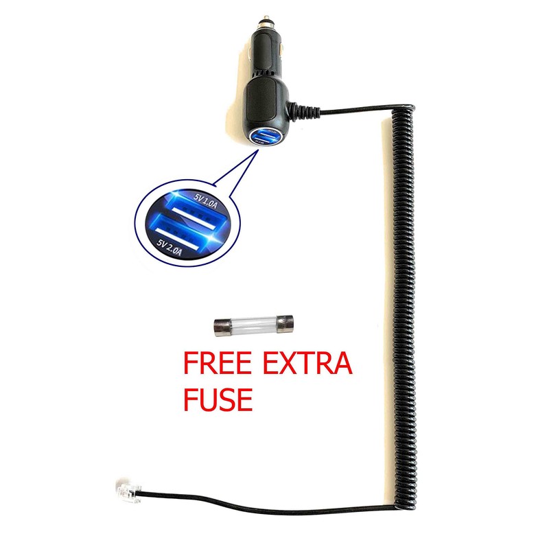 * Package included: 1 unit of Coiled DC Power Cord with DUAL USB Charger/Adapter and 1 extra fuse