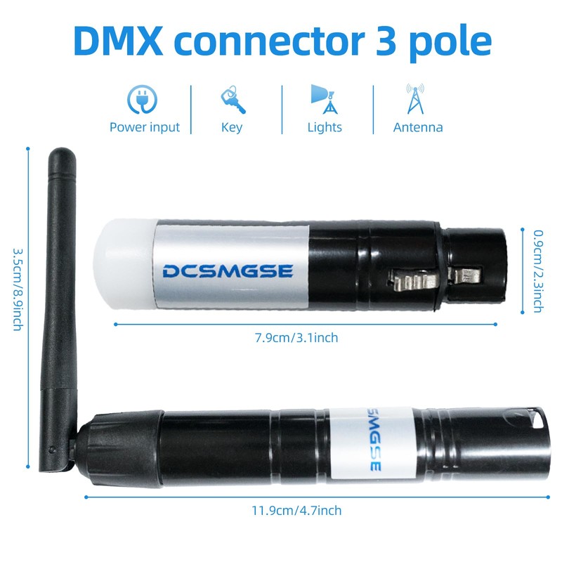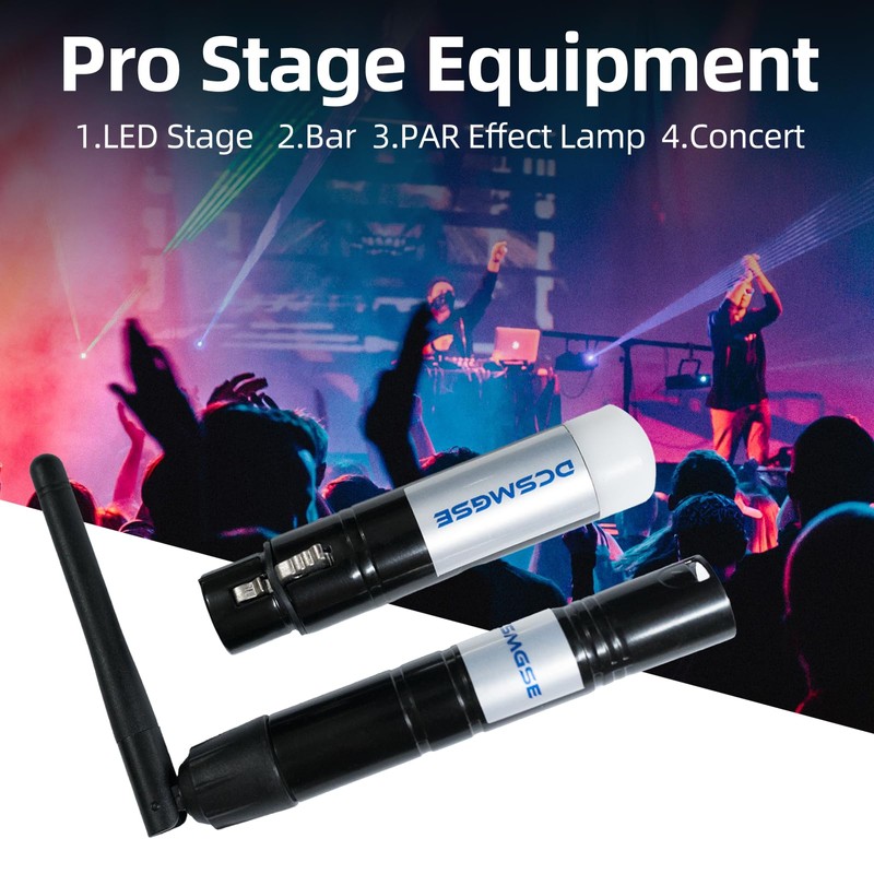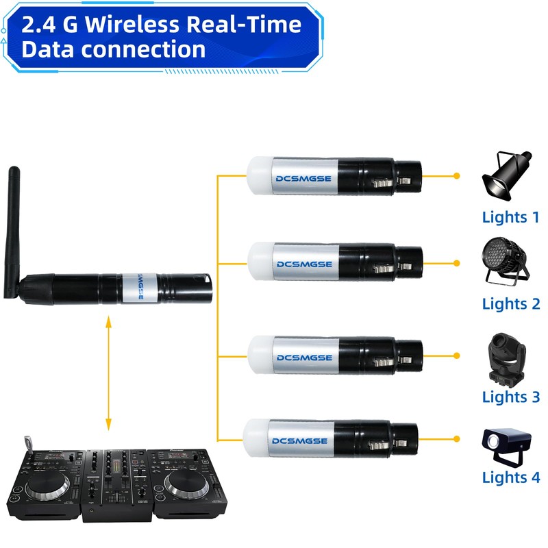 - Dcsmgse DMX512 wireless receiver/transmitter transmits standard DMX512 protocol data (generated by console) by wireless way.
