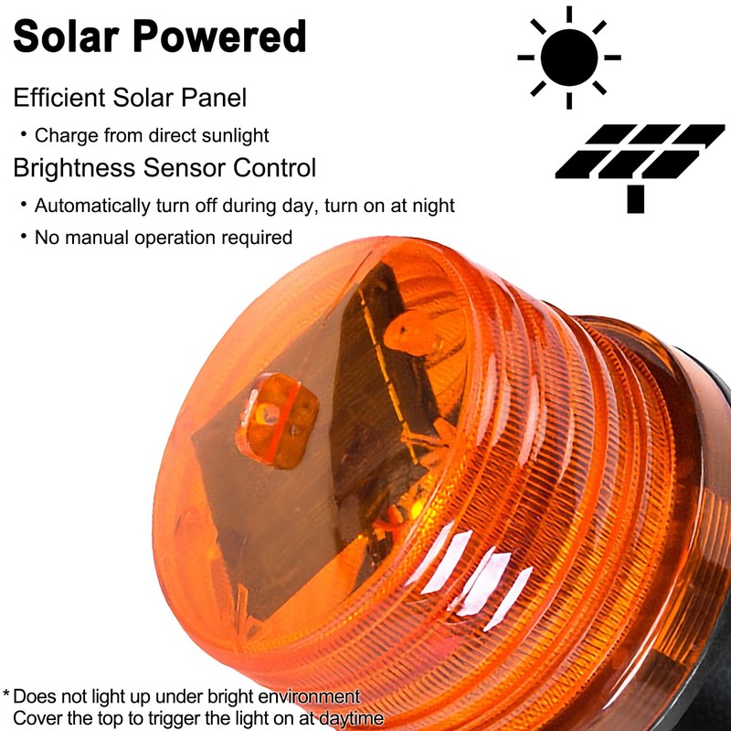 DE-Spark Handheld Emergency LED Solar Powered Strobe Warning Light, Road Construction Cone Traffic Light Flicker Beacon Lamp