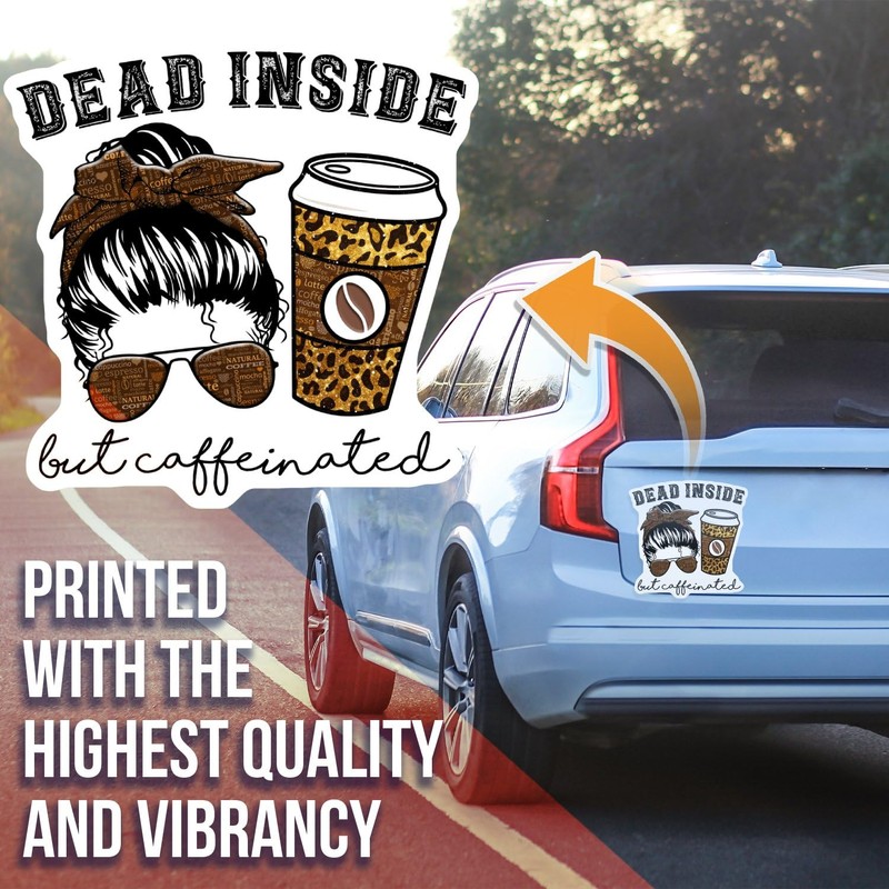 Dead Inside But Caffeinated Funny Coffee Lover Sticker - Perfect for Laptops and Water Bottles - Unique Gift for Coffee Addicts - Cool Decal - 5 Inches On Widest Side AAS1867