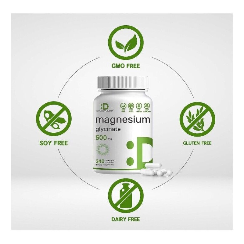 Deal Supplement 2 PACK, Magnesium Glycinate 500mg, 240 Veggie Capsules, Chela...