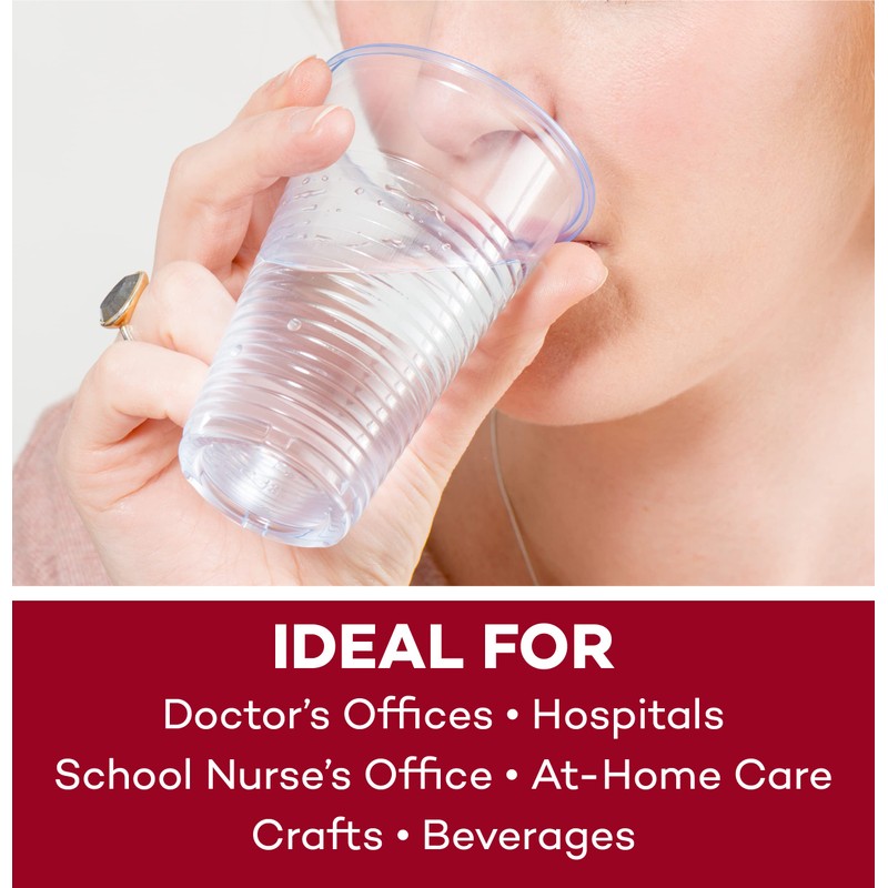 - MULTI-PURPOSE USE: Ideal for all environments, the disposable plastic cups are suitable for doctors offices, hospitals, home care facilities, schools, and for at home use. They’re great for athletes, school nurses, lifeguards, classrooms, and ambulances for those in need of liquids or using for arts & crafts.