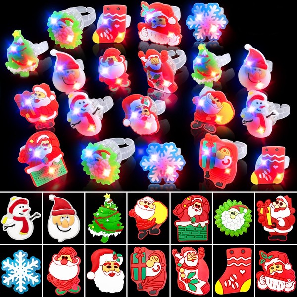 - Light up Christmas Rings: The glow in the dark party favors small toys set contains 50 pcs flashing LED Christmas rings.These glow in the dark party supplies have 14 different styles and will light up night of Xmas.Perfect for kids/adults party supplies decoration and party games
