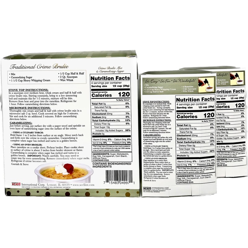 Easy Stove-Top Instructions: In 2 quart saucepan over medium heat, whisk 1 cup heavy whipping cream, 1 cup half & half (or whole milk), with Crème Brulée mix.