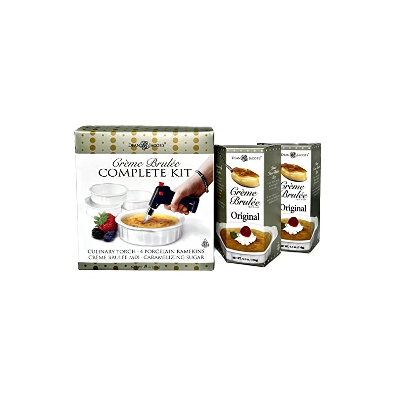 - Dean Jacob's Crème Brulée Complete Kit with 2 Additional Original Mixes - Enough mix for 12 servings.
