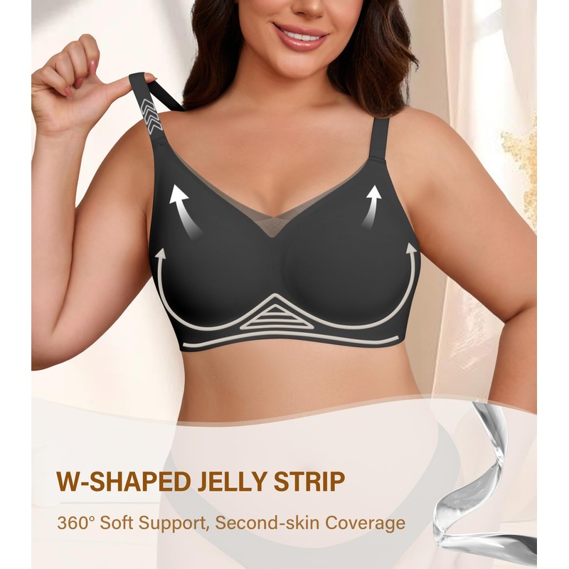 - đăSupportive Bras for WomenăThe bralettes for women with support use a "W" shaped "Jelly Strip" support and lift system on the chest and the surrounding jelly strips at the bottom that offers 360° support for your breasts. Our full coverage bra have wireless design provides soft support, full coverage gives you the most comfortable feeling of being wrapped. Our seamless bra for women with no underwire supports a naturally rounded and fuller body shape.