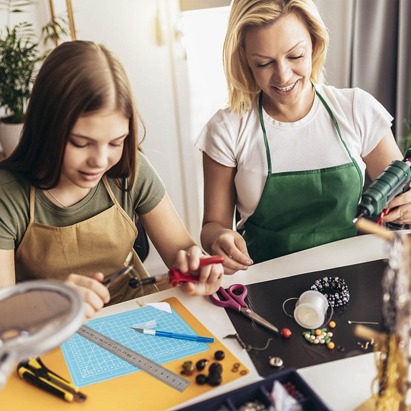 - Multiple accessories: a cutting mat, a 30 cm ruler, a cutter knife, five replacement blades made of iron, the blades are very sharp, be careful when using and store them carefully after use.