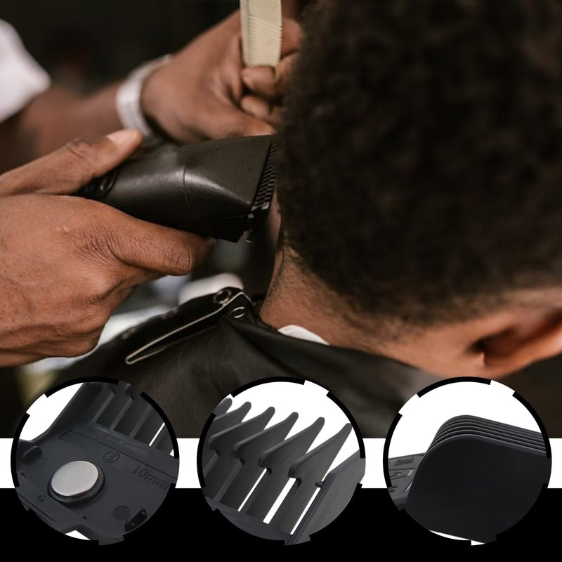 Ideal for barbers, stylists, and at-home grooming enthusiasts, each guard snaps securely onto the clipper, ensuring a safe and comfortable trimming experience