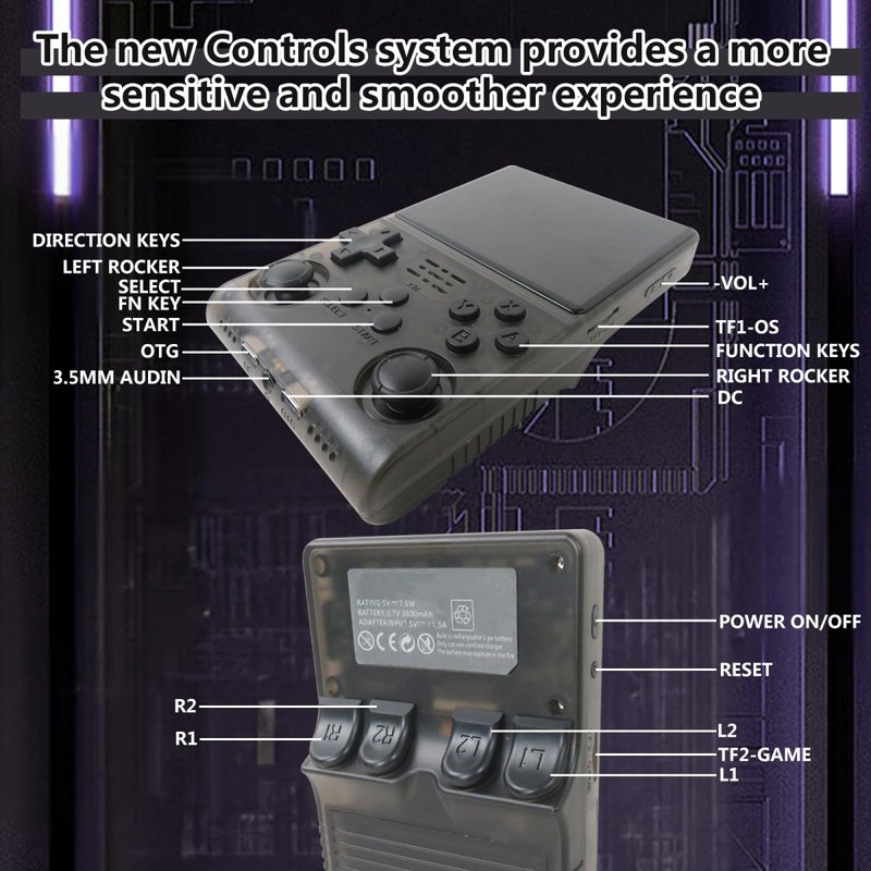 - 【3.5-inch HD screen】The 3.5-inch IPS full-view screen ensures no errors at different angles, with a 640x480 resolution and clearer RGB color display.Dual 3D joysticks give you a better gaming experience