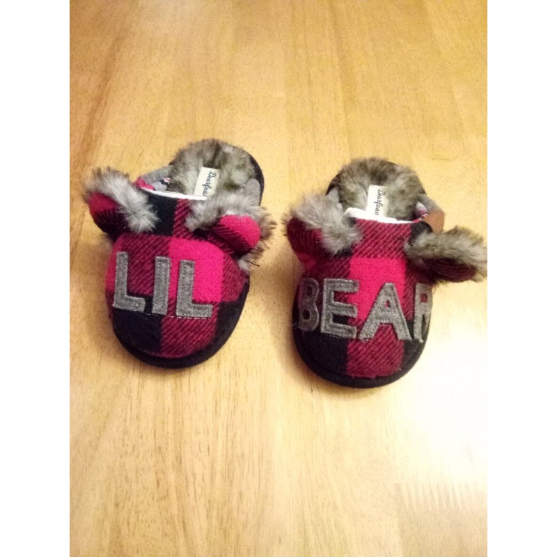 Dearfoams Child Slippers Size 5-6 Little Kids Buffalo Plaid Red Black Fur Lined
