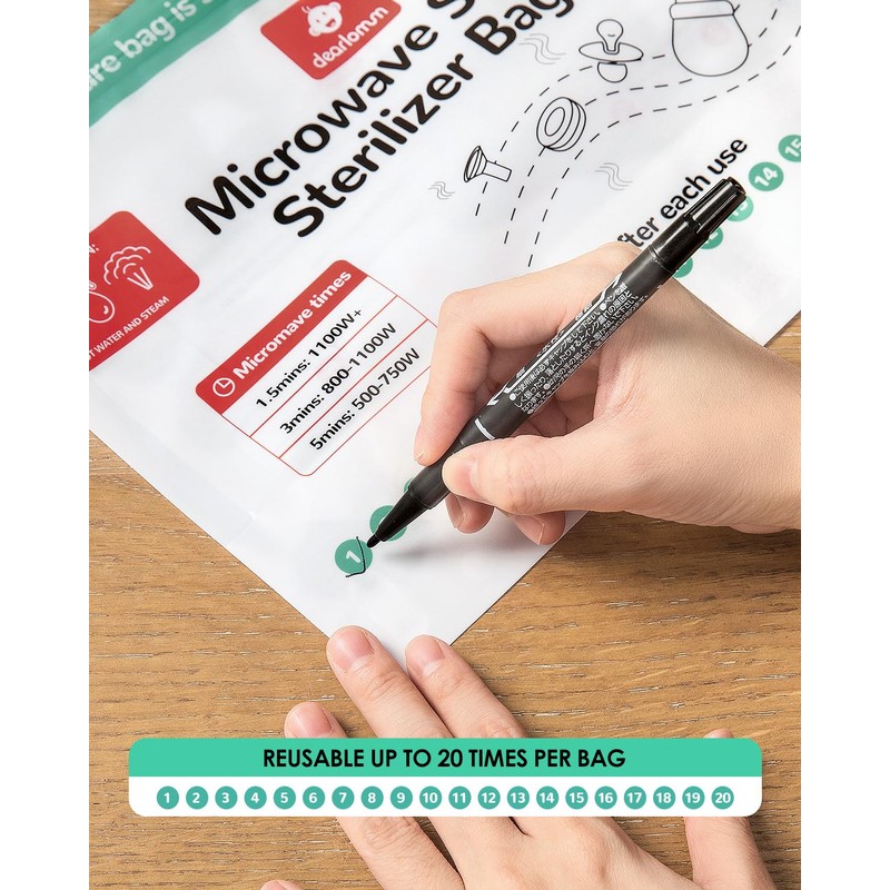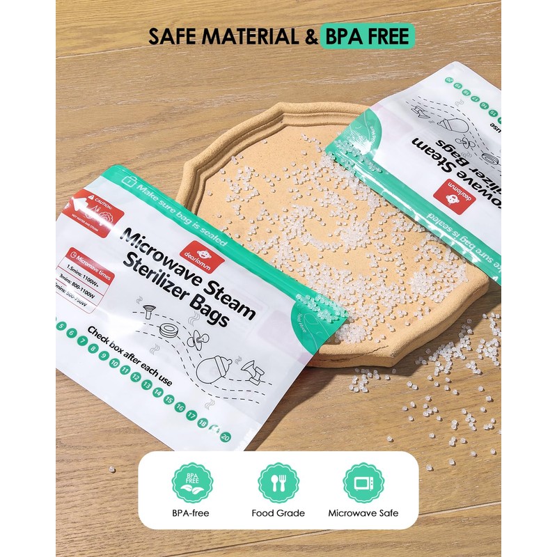 dearlomum Microwave Steam Sterilizer Bag for Baby Bottles 8 Count (20 Uses Per Bag), Reusable Travel Sterilization Pouches, Disinfection Container for Baby Pacifiers and Breast Pump Accessories