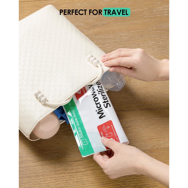 - 【Main Functions】Microwave sterilized container, mainly for baby bottles, pacifiers, teether and mom breast pump accessories. Non microwave heating material iteams are prohibited from being placed inside, and the bag only provides the function of storage container.