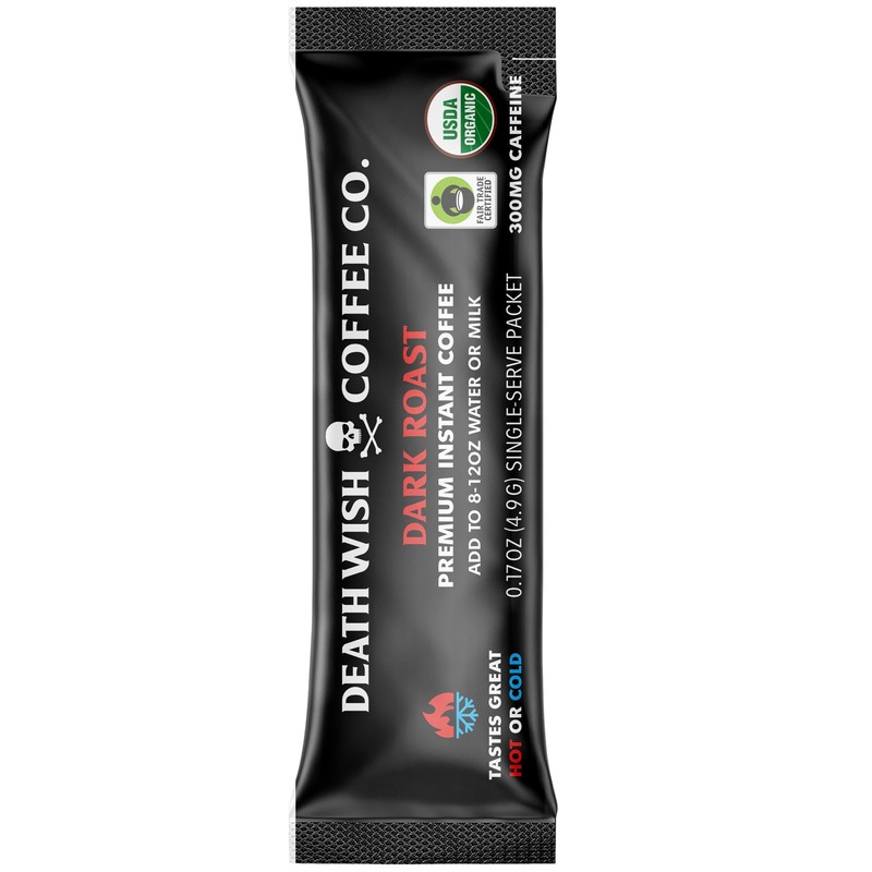 Death Wish Coffee Instant Dark Roast Coffee Packets, Bold & Intense Blend of Arabica & Robusta Beans, USDA Organic, 64 Count