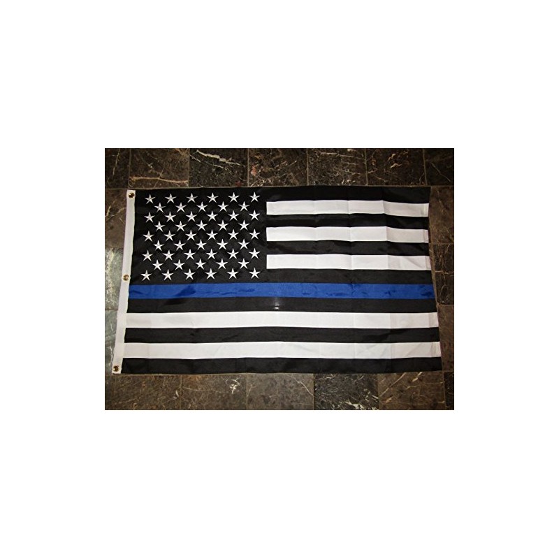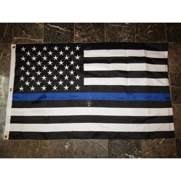 DEC 3X5 Embroidered Sewn USA Police Thin Blue Line 600D Nylon Flag 3'X5'