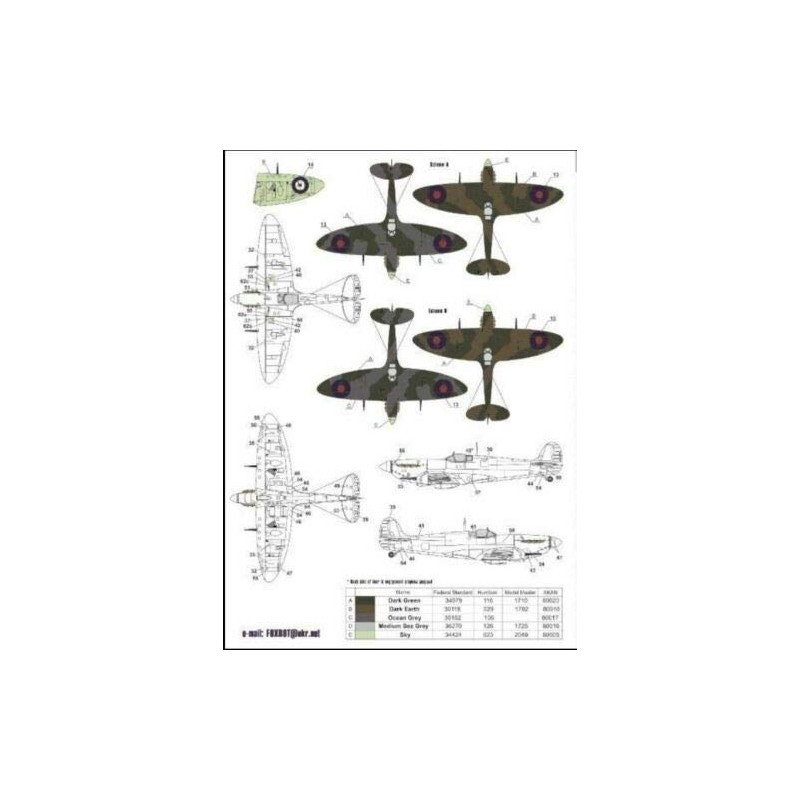 Manufacturer: Foxbot Decals (Ukraine) Theme: Accessories for military aircraft Code: 48-002 Scale: 1:48 Material: Decal Sheet Condition: New Suitable for models of such brands: Airfix, Monogram, Revell kits High quality decal - 5 variants of assembly, for Spitfire Mk. II. Package includes: 1 decal sheet Instruction