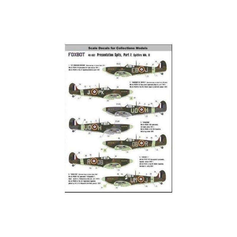 Decal for British Supermarine Spitfire MK II Presentation Spits Part 1 1/48 Scale Foxbot 48-002 - Model Kit
