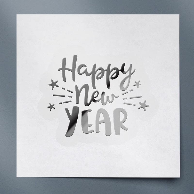 Decal Stickers of Happy New Year (Metallic Silver) (Set of 2) Premium Waterproof Vinyl Decal Stickers for Laptop Phone Accessory Helmet Car Window Mug Tuber Cup Door Wall - ANDVER1c35701SI_102023