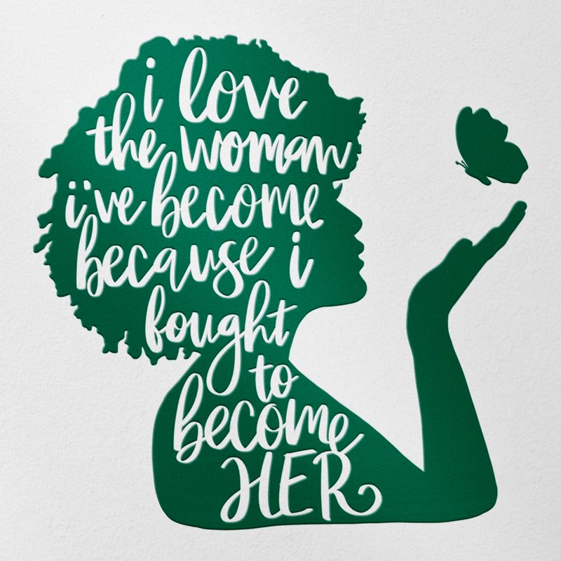 Decal Stickers of I Love The Woman I've Become (Green) (Set of 2) Premium Waterproof Vinyl Decal Stickers for Laptop Smartphone Car Dirt Bike Wall Room Mason Jar Bathtub - 0j9685GR